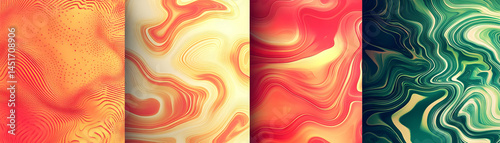 Obraz premium Vibrant Abstract Backgrounds Collection: Swirling Marble Textures in Orange, Red, and Green