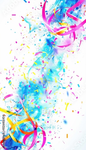 Fototapeta premium Vibrant Abstract Birthday Background with Dynamic Swirling Ribbons and Neon Confetti