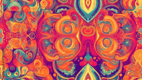 Fototapeta premium Vibrant abstract blurred paisley design Continuously repeating pattern or texture Kaleidoscopic oriental inspired style