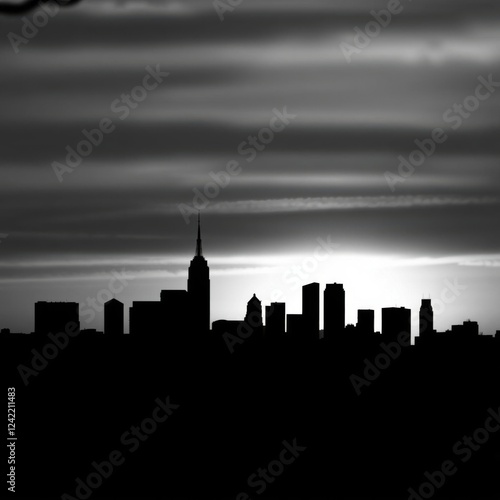 Fototapeta premium Vibrant abstract city skyline with silhouetted skyscrapers and modern architecture skyline silhouette