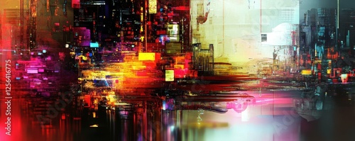 Naklejka premium Vibrant abstract cityscape with bold colors and geometric patterns
