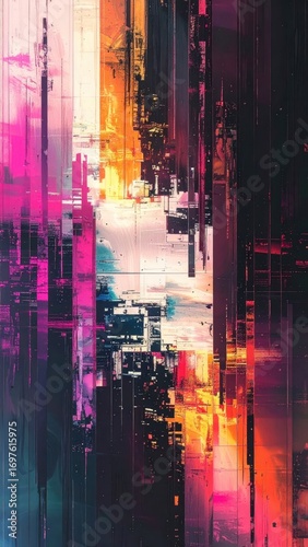 © Kitta Studio, Obraz premium Vibrant Abstract Digital Art with Bold Colors and Dynamic Lines