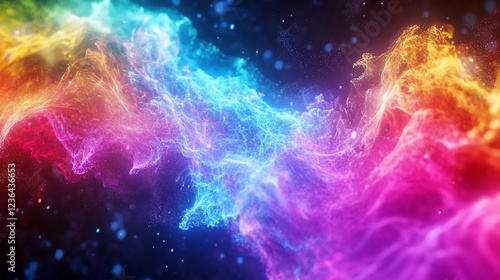 © adha, Naklejka premium Vibrant Abstract Digital Art with Swirling Nebulous Lines and Colorful Gradients