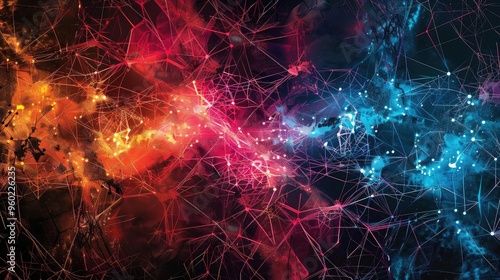 © Thamonchanok, Obraz premium Vibrant abstract digital artwork showcasing a blend of colorful shapes and lines, perfect for technology and creativity themes.