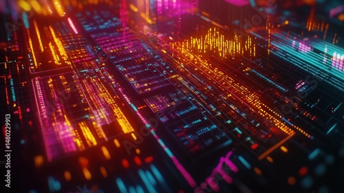 Obraz premium Vibrant Abstract Digital Background with Colorful Light Patterns