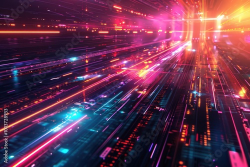 Fototapeta premium Vibrant Abstract Digital Light Trails in Motion