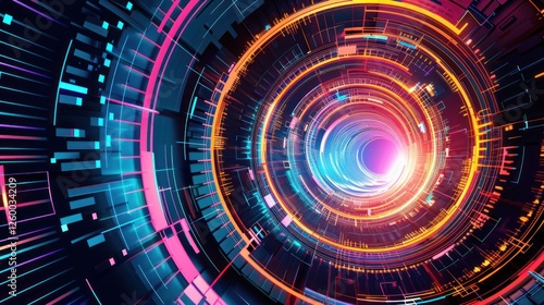 Obraz premium Vibrant Abstract Digital Tunnel with Colorful Patterns and Lights
