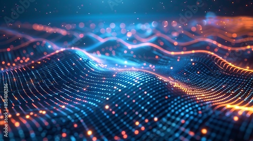 Fototapeta premium Vibrant, abstract digital waveforms with glowing particles. Futuristic tech...