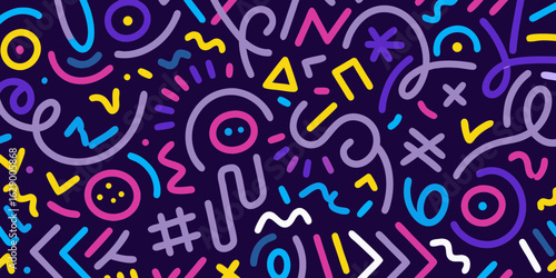 © Dibyendu, Fototapeta premium Vibrant abstract doodle pattern with playful geometric shapes