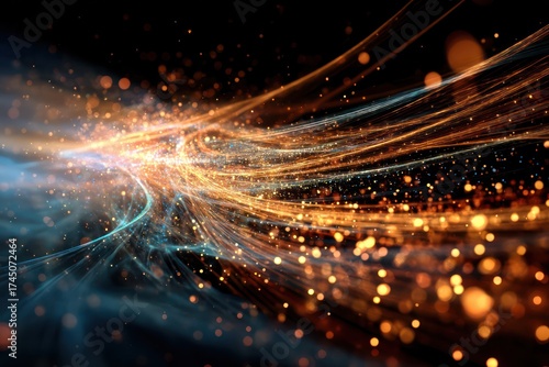 © Ольга Лукьяненко, Fototapeta premium Vibrant Abstract Flowing Light Lines and Particles