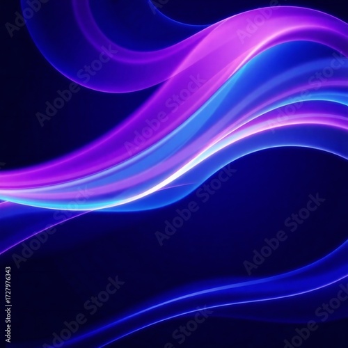 © KaziMasum, Naklejka premium Vibrant abstract flowing waves of purple and blue light on a dark background