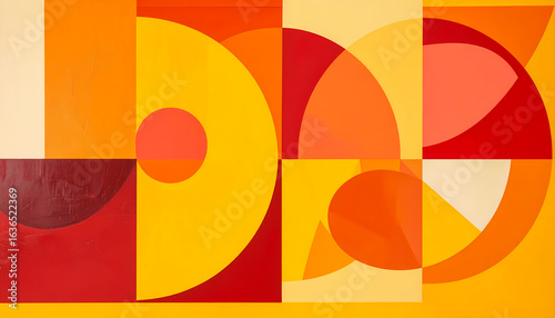 Obraz premium Vibrant abstract geometric background pattern with red, orange, and yellow warm color. Modern art shapes create dynamic and energetic feeling for creative design projects