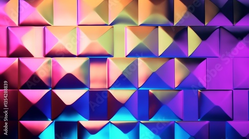 © Ferry, Obraz premium Vibrant Abstract Geometric Pattern with Colorful Square Pyramids