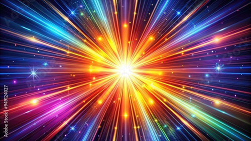 Fototapeta premium Vibrant, abstract glow rays radiate from a central source, forming a...