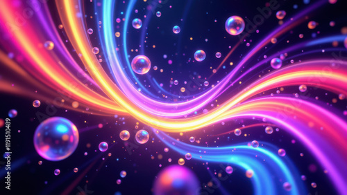 Fototapeta premium Vibrant abstract glowing sphere light with colorful bubbles on dark grey...