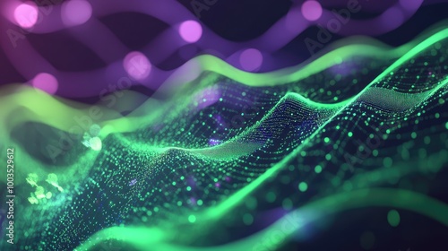 Fototapeta premium Vibrant abstract green and violet shapes, representing the intersection of Julia programming and data analytics