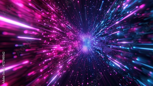 Naklejka premium Vibrant abstract image of pink and blue light particles rushing towards the...