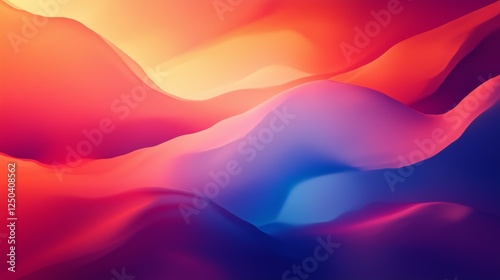 Fototapeta premium Vibrant abstract landscape with flowing shapes and gradients in warm and cool...