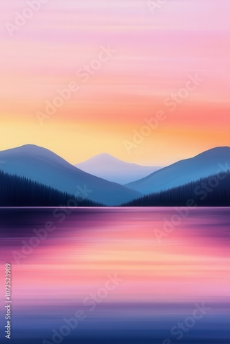 Fototapeta premium Vibrant abstract landscape with mountains and serene water at sunset