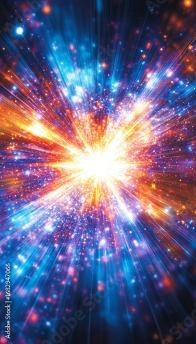© Ilja, Naklejka premium Vibrant Abstract Light Beams Bursting Through a Central Core, Creating a Stunning Visual Spectacle