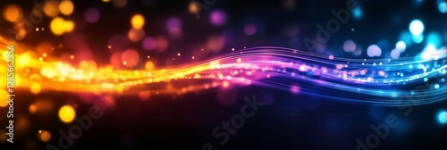 © wannapong, Obraz premium Vibrant Abstract Light Waves with Bokeh Effect on Dark Background