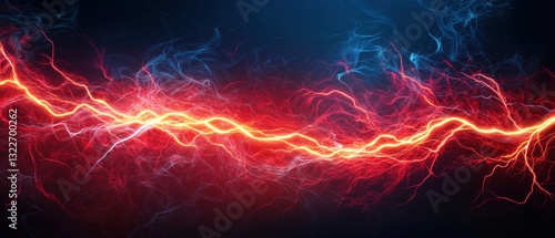 © khonkangrua, Obraz premium Vibrant Abstract Lightning Bolts with Electric Blue and Fiery Red Colors on a Dark Background