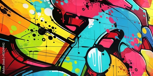 © gustav, Obraz premium Vibrant Abstract Mural in Urban Setting created by ai