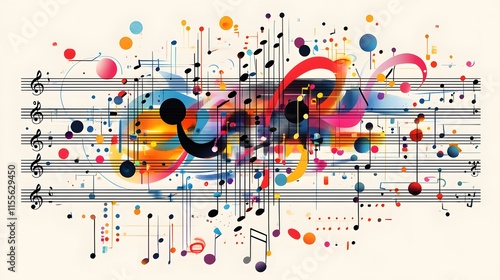Obraz premium Vibrant Abstract Music Notes and Colorful Patterns Blending Together to...