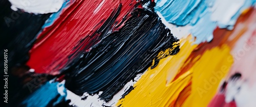 Fototapeta premium Vibrant abstract oil painting with bold red, yellow, and black brushstrokes