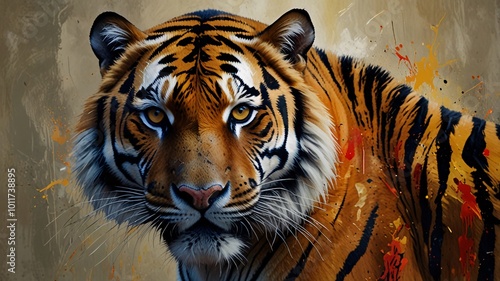 Fototapeta premium Vibrant Abstract Painting of a Bengal Tiger in Dynamic Colors and Creative...