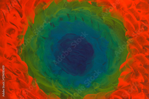 © Nataliia, Obraz premium Vibrant abstract painting with circular green and red patterns