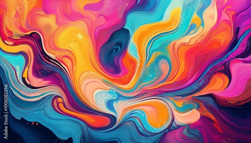Fototapeta premium Vibrant Abstract Painting with Melted Color Patterns and Organic Fluid Shapes, Energetic and Colorful Concept Art for Modern Interiors