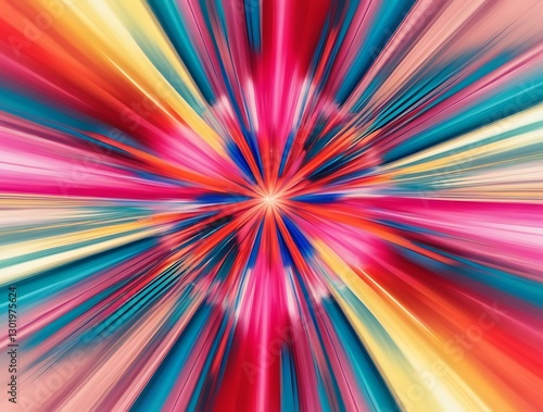 © Sina Blaze, Fototapeta premium Vibrant abstract radial burst with multicolored streaks creating a dynamic explosion effect, perfect for energetic backgrounds, motion concepts, and artistic digital designs