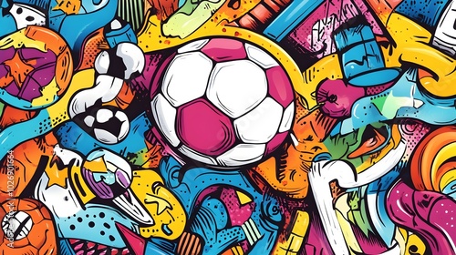 Obraz premium Vibrant Abstract Soccer Ball Doodle in Retro 80s Pop Art Style