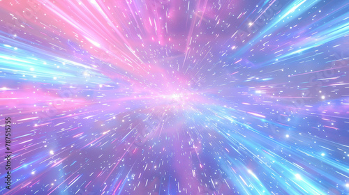 Naklejka premium Vibrant abstract starburst in pinks and blues simulating light speed.