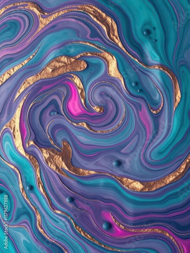 Naklejka premium Vibrant abstract swirls in teal, magenta, and gold create a dynamic backdrop, design, pattern