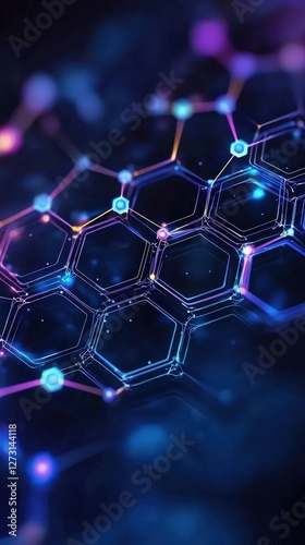 Obraz premium Vibrant Abstract Technology Background Featuring Neon Hexagonal Network Structure