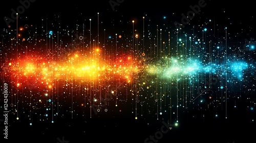 Fototapeta premium Vibrant abstract wave of colorful light particles flowing through a dark...