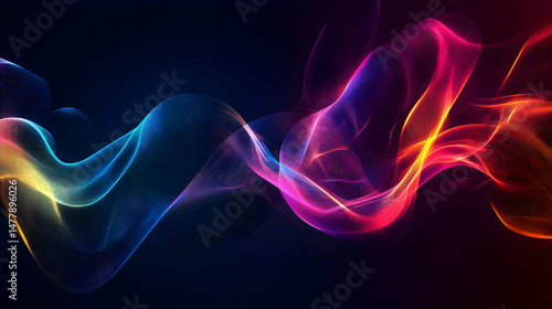 © Kanika Graphic, Obraz premium Vibrant Abstract Waves in Multicolor Display with Soft Glow Effect