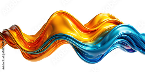 Fototapeta premium Vibrant abstract waves in orange and blue flowing dynamically against a white...