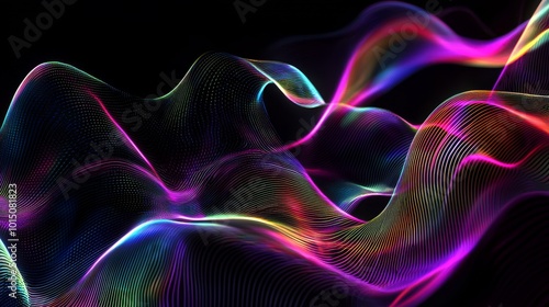 Obraz premium Vibrant abstract waves in purple, blue, and pink hues creating a mesmerizing flow against a dark backdrop.