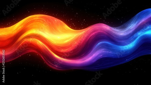© Prime Stox, Obraz premium Vibrant Abstract Waves in Vivid Colors Against Black Background