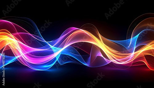 © BudiSanto, Naklejka premium Vibrant abstract waves of colorful glowing light on a dark background