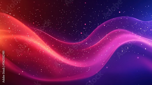© Sarinya, Obraz premium Vibrant Abstract Waves with Glowing Particles in Red and Purple Tones for Backgrounds