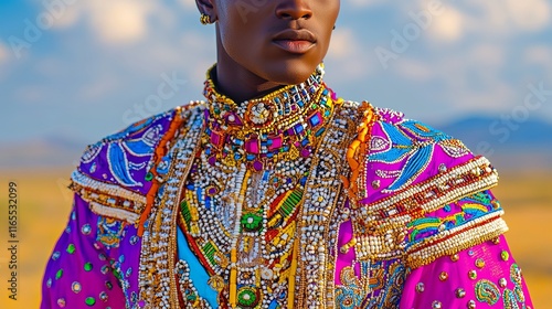 © Nuntapuk, Obraz premium Vibrant African Ceremonial Outfit Portrait
