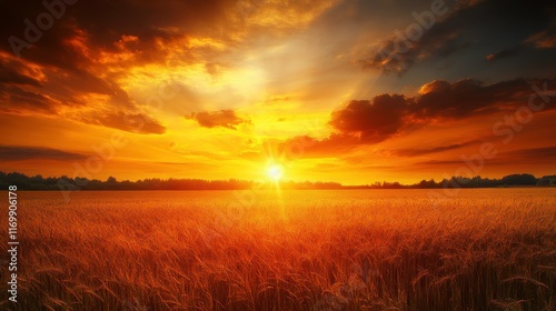 © Fauzerene, Obraz premium Vibrant Agricultural Field Under Warm Sunset Light