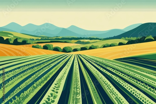 Fototapeta premium Vibrant agricultural landscape with lush fields and rolling hills in the...