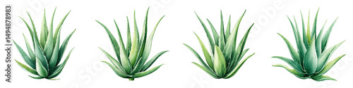 © R Studio, Fototapeta premium Vibrant aloe vera plants with thick fleshy green leaves growing in a natural outdoor environment