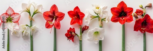 © Paul, Obraz premium Vibrant Amaryllis Blooms on White Background Generative AI