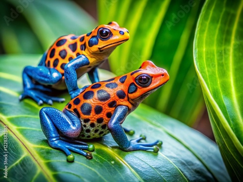 © Four888, Obraz premium Vibrant Amazon Poison Dart Frogs on Lush Rainforest Leaves - Macro Photography